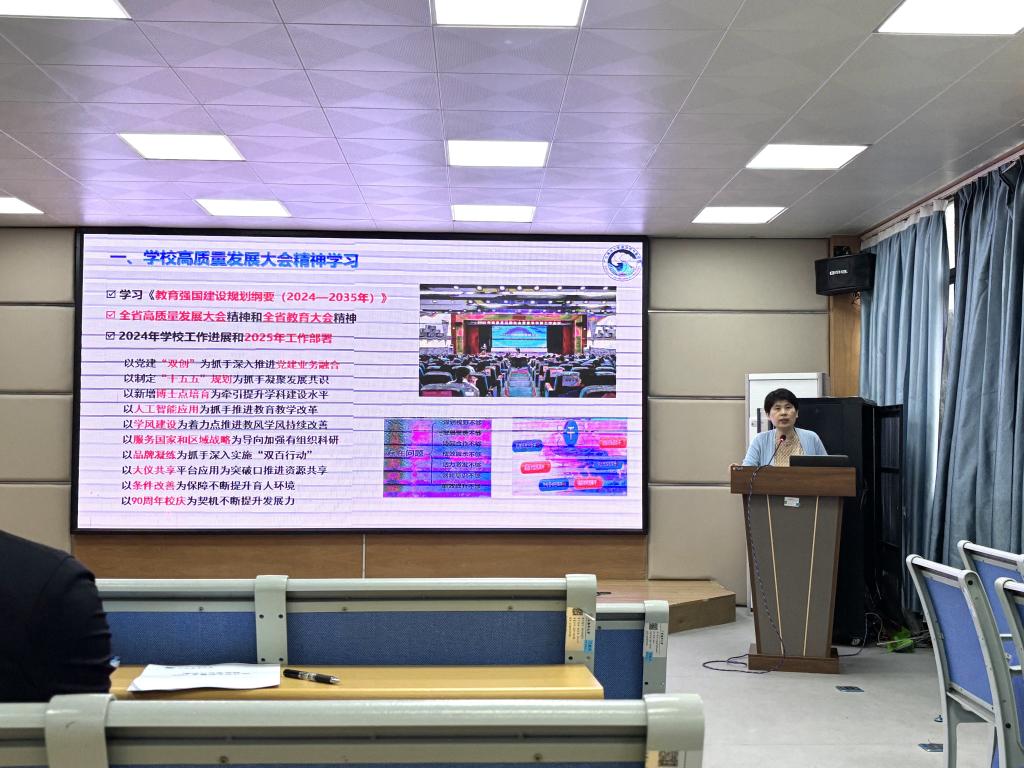 会上,各分管领导依次汇报工作。谢玲玲院长总结过去一年学院总体建设情况,提出了2025年学院重点工作建议,鼓励老师们积极关注政策、参与科研项目;薛宇峰副院长围绕教学建设,梳理课程改革与成果,规划了新学期工作重点;侯庆华副院长介绍学科发展现状,指出学科提升的重要指标,提出了新的工作目标;郑少军副院长就科研平台及研究生教育,汇报项目进展与培养计划;胡森林副书记就学生工作情况进行全面总结,提出了学生工作新思路;毛琪书记强调党建工作的重要性,阐述了五个保障措施,提出了新的工作任务。