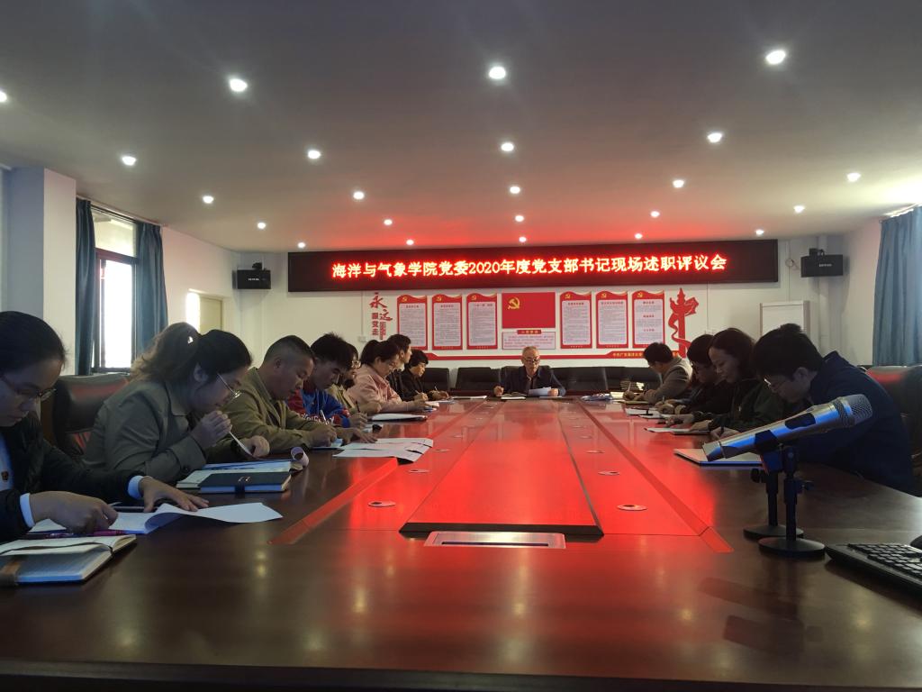 12月25日下午,学院党委在海科楼505会议室召开2020年度党支部书记现场述职评议会,学院党委委员、党支部书记、党政办主任、组织员、团委书记、教师代表2名、学生代表1名参加,会议由学院党委书记陈晓主持。