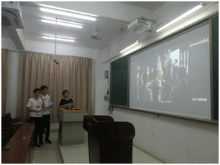 接着,在党史电影配音环节中,邓子豪、史侯翔、翁汉炜三位同学大显身手,为我们带来了电影《建党伟业》里经典片段的配音,再现中国共产党成立前夜筹备的全过程。