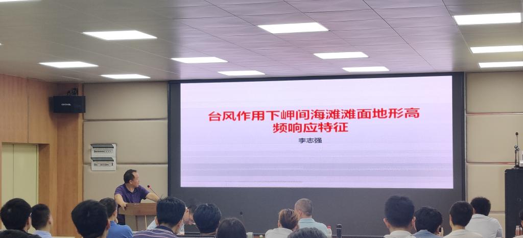 本次会议共组织了16场学术报告,其中6场为本校研究生所做报告。在报告开始之前,物理海洋、海洋气象、海洋化学和边缘海地质学各个学科方向均派代表老师在会上针对各自方向的近期研究作了简单汇报。学科方向汇报完成后,学术报告专场正式开始,李志强教授首先台为我们介绍了风作用下岬间海滩滩面地形高频响应特征,随后代替未能到场参会的张鹏老师作了题为“Long-term red tide outbreaks, nutrients pattern under the climate change and anthropogenic pressures in the Zhanjiang Bay, China”的学术报告。彭诗云、韩利国、罗亚飞、谢辉、李高聪、李敏、梁梅和李君益等多位老师都就各自领域的最新研究进展作了精彩纷呈的汇报。另外英国上市公司365的陈国生、陈莹、黄润琪、冯伟家、陆旋和王焕等多位优秀研究生也就自己研究内容进行了汇报。现场讨论激烈,氛围浓郁,学术会议取得良好效果。