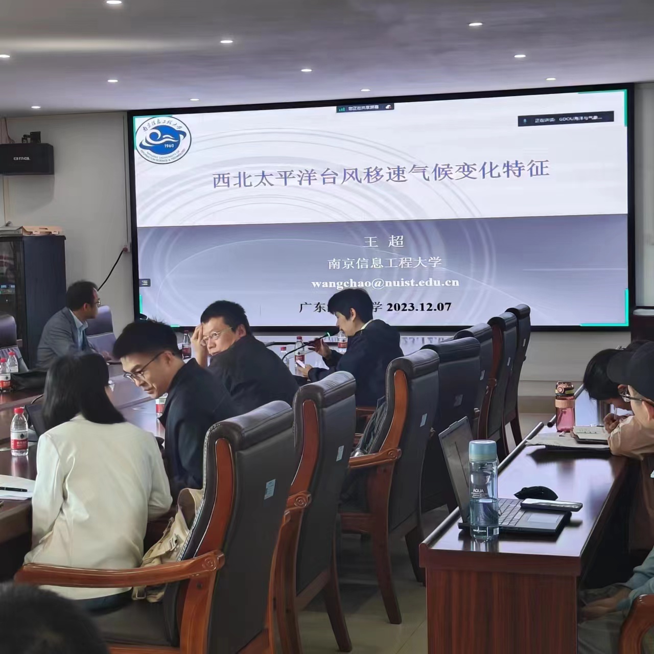 吴立广教授报告题目为:台风精细结构的数值模拟,他通过生动形象的例子深入浅出地讲解了龙卷尺度涡旋、台风眼墙极端上升气流、主雨带对流尺度结构、眼墙极端气压等内容。赵海坤教授报告题目为:热带波动在台风生成中的作用及其季节内预报尝试。他系统地讲解了季节内振荡对台风生成的大尺度调制作用、气候模式中的天气尺度波列、台风生成与热带波动的直接联系以及台风生成中季节内预报的尝试。曹剑教授对过去百年半球尺度季风降水的长期变化以及气温和气溶胶的对降水的影响进行了系统性的介绍。王超教授对西北太平洋台风移速的显著下降趋势进行了深入的探讨,并从引导气流和西北太平洋副热带高压两个方面进行了分析。几位教授同与会师生进行了热烈的学术讨论与交流,详细回答了学院师生提出的问题。此次学术讲座,开拓了师生们对台风领域以及季风降水的专业视野,对今后的学习、科研及学科发展有很大的启发和指导意义。