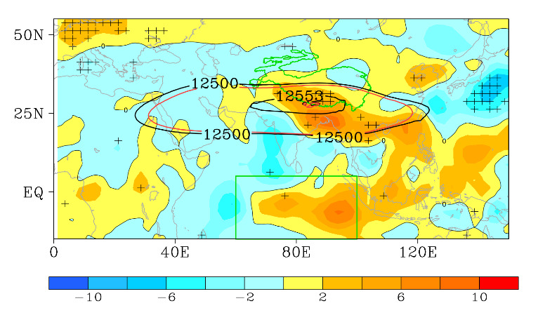 南亚夏季风(SASM,South Asian summer monsoon)是亚洲季风系统三个成员中最强的成员,其强度受海陆热力差异的影响。欧亚大陆和印度洋之间的热力对比越大,SASM环流越强,季风降水越多。