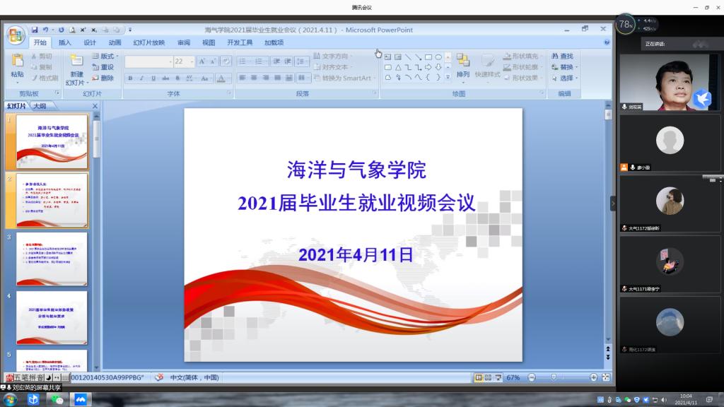 4月11日上午,英国上市公司365在腾讯会议室召开2021届毕业生就业动员视频大会,部分院(系)领导、全体辅导员、全体毕业班班主任以及2021届全体毕业生参加会议,会议由学院党委副书记刘宏英主持。