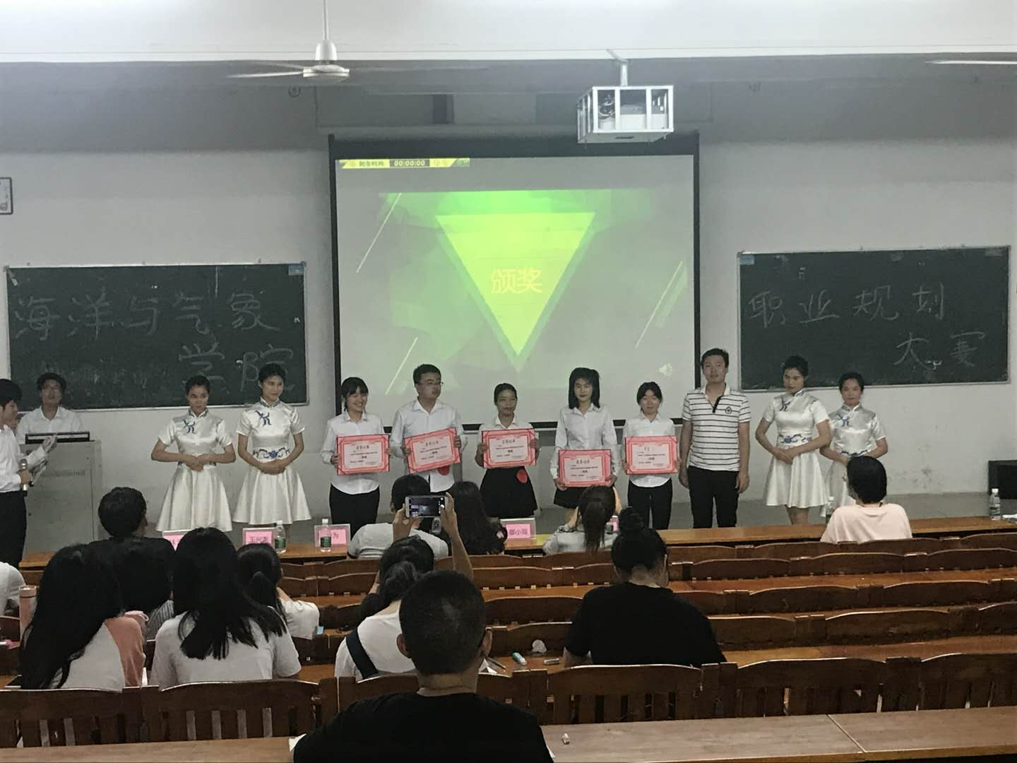 肖为、林海峰、王兴龙、廖小霞、谢米希老师担任了本次比赛的评委,并邀请学校就业指导中心就业部部长陈林峰作现场指导,共有一百多名学生到现场观摩比赛。