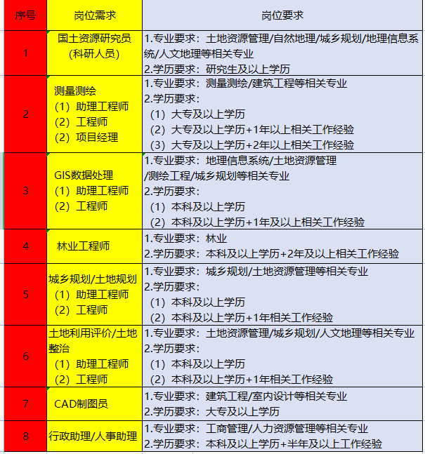 国土行业政策性解读及技术研究,协调企业内部相关部门准备和收集文档资料,参与编制项目申报材料,完成申报任务,跟踪项目进展和主管部门评审进度,岗位职责范围内各级别、各类型、内外部的会议、调研、总结、汇报、研讨、培训等工作。