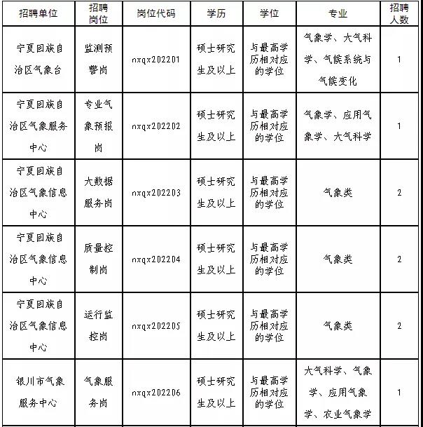 宁夏气象局2022年度公开招聘应届高校毕业生公告(第1号)