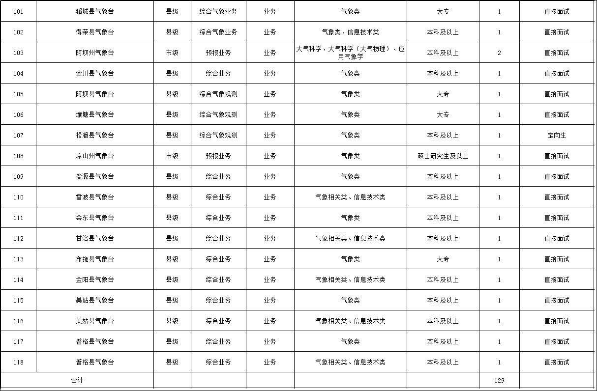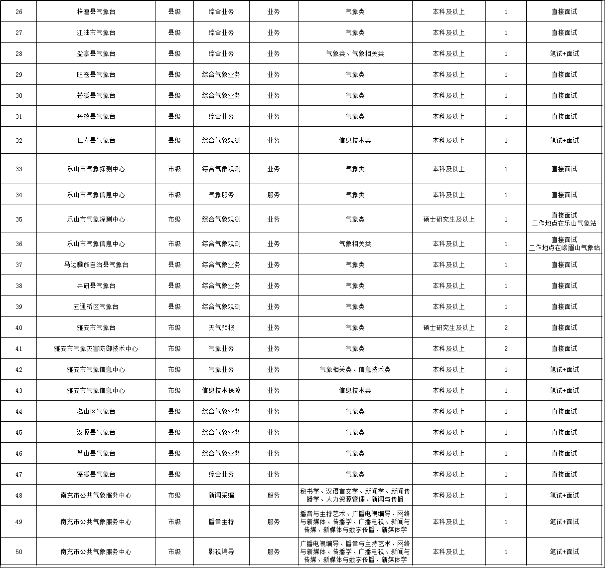 国家气象系统具体招聘岗位详见《四川省气象部门