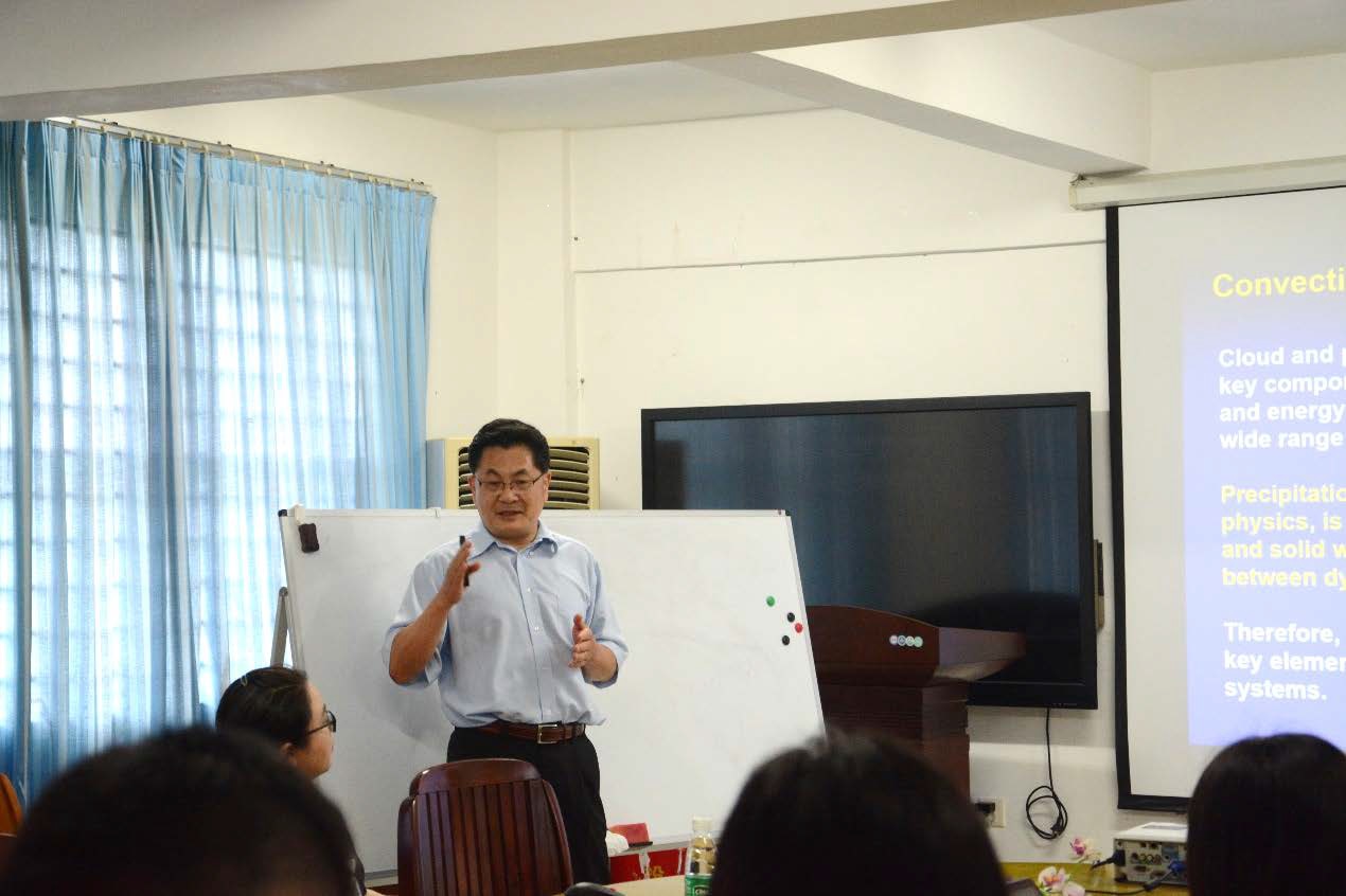 Xiaoqing Wu教授介绍了云分辨模式,并深入探讨了应用云分辨模式的结果改进全球气候模式中的积云对流参数化方案,云和辐射过程相互作用,以及气候平衡态与气候变化的模拟。陈景华博士在报告中通过云分辨模式对北半球夏季青藏高原的模拟, 系统介绍了地表热通量对云和降水的产生和发展的影响及其对大尺度环流模式的相对重要性。会后,Xiaoqing Wu教授和陈景华博士同与会师生进行了热烈的学术讨论与交流,详细回答了学院师生提出的问题。此次学术讲座,开拓了师生们的专业视野,对今后的学习、科研及学科发展有很大的启发和指导意义。