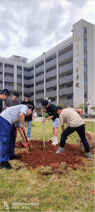劳作中,同学们裤腿上沾满了泥土,一张张脸颊旁流下了汗珠,但每个人都流露出自豪、愉悦的神情,以最诚挚的真心维护着校园春日里的葱葱绿意与万紫千红。海气1193班班长周树廷同学表示:“除了拍摄毕业照,大家能再聚在一起的机会并不多了。临近毕业组织的这一次植树活动,也算是给同学们在海大留下一份念想。以后的日子里,海大的日落星起,云卷云舒,就拜托这颗凤凰木替我们欣赏了。在不久的九十周年或是百年校庆,等着我们带着希冀,带着热情,在一个微风和煦的午后,来一场久别重逢的邂逅。时间会证明一切的,我们一直都在!”