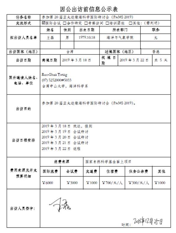 根据《关于进一步规范省部级以下国家工作人员因公临时出国的意见》的要求,现将学院因公出访相关信息予以公示。公示时间为2018年12月26日至30日。如有意见,请在公示期内,向学院反映。(院办电话:0759-2396055)