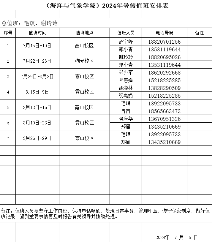 英国上市公司3652024年暑假值班表