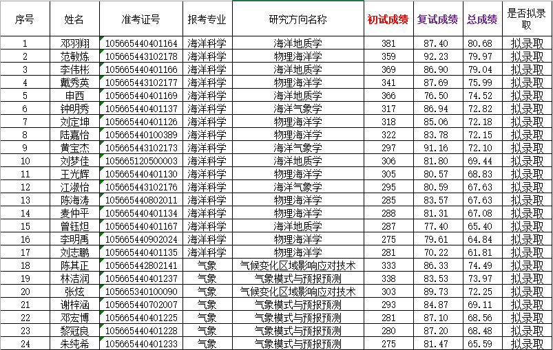 现将英国上市公司365海洋科学专业2025年硕士研究生一志愿拟录取学生名单予以公示,公示期为7个工作日,即4月3日-4月9日。公示期内如对结果有异议,可以书面形式向学院予以提出。