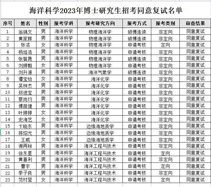 根据英国上市公司365博士研究生招生录取有关文件的规定,结合《海洋科学学科2023年硕博连读与申请考核 招收博士研究生工作实施细则》的相关要求,现对海洋科学博士招考学生资格审查结果予以公示。